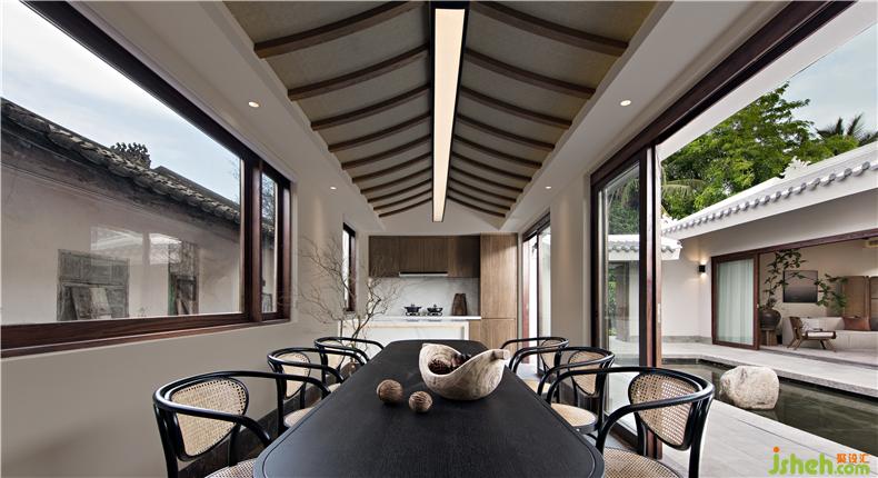 王灣的《次北固山下》“潮平兩岸闊,風(fēng)正一帆懸?!币胫黝},融合當(dāng)?shù)馗N幕?,打造的室?nèi)空間。