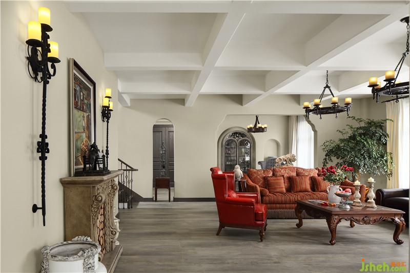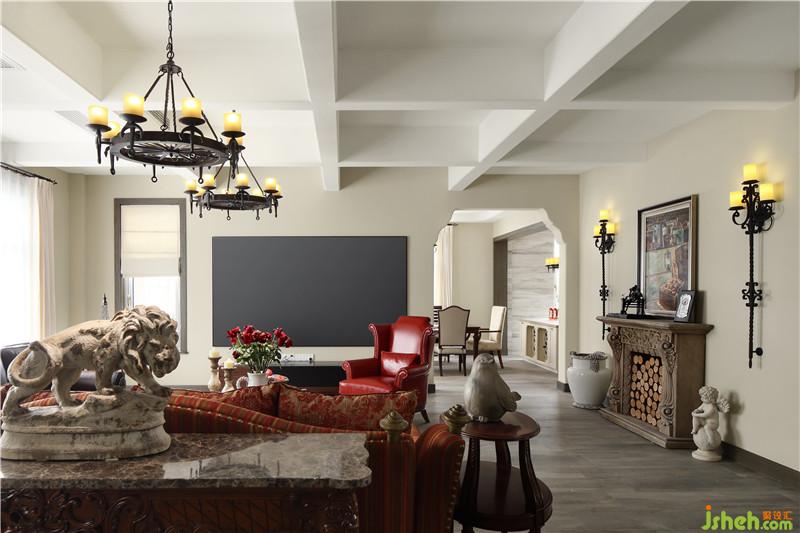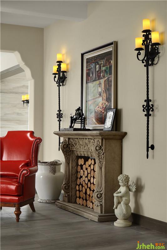 進(jìn)入軟裝搭配階段后,業(yè)主委托我尋找一款合適的壁爐放在客廳。尋遍市場(chǎng)仍無中意款式,直到那個(gè)雨天在庭院的角落看到了落滿灰塵的一個(gè)砂巖壁爐,眼睛立刻放光。將其清洗干凈安放到這里,再次化腐朽為神奇。油畫雖不是大師作品,但細(xì)膩的筆觸,流淌的色彩仍然堪稱經(jīng)典。淺灰木紋仿古地磚按照設(shè)計(jì)的要求切割拼貼,古樸的韻味透出了高級(jí)時(shí)尚感。