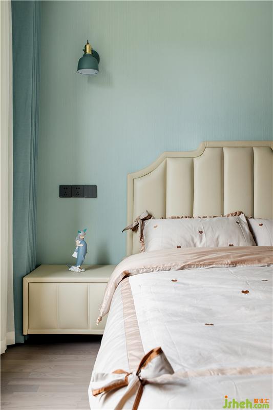 妹妹房間清醒活潑,仿佛春天的田野,專為百靈鳥在這里歌唱。房間其實不大,書桌的位置是“借”了隔壁大衛(wèi)生間的一塊。但我們?nèi)匀幌M臻g是綻放的,因為要讓心靈自由飛翔。