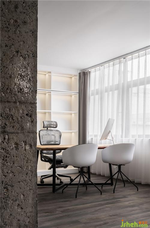 適度打磨的清水混凝土與極其細(xì)膩的意大利涂料??此茖?duì)立,實(shí)則性格互補(bǔ)“相談甚歡”。