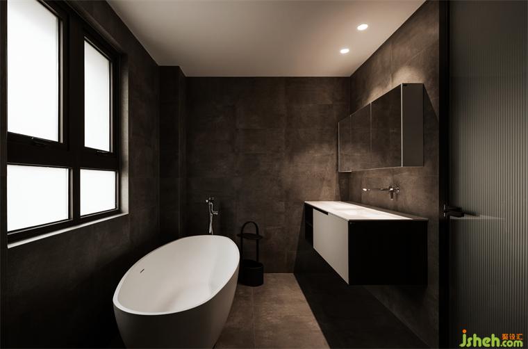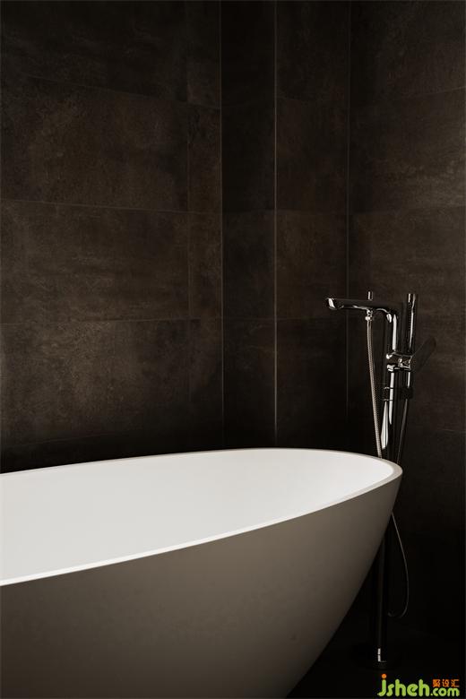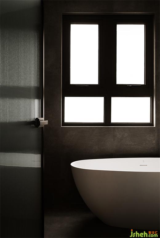 主衛(wèi)采用深色瓷磚,襯托出浴缸的白,隱透出一絲神秘感。