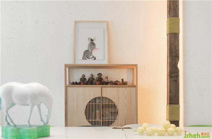 稻草漆墻面純樸自然,檸檬黃、孔雀藍裝飾點綴其中,賞心悅目。簡潔的硬裝和體現(xiàn)董事長個人情懷的軟裝、藝術(shù)品相互融合。