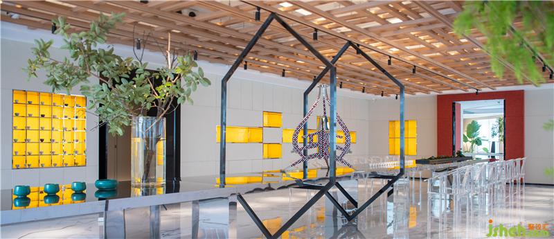 走道盡頭和展廳入口處是以莆田當(dāng)?shù)氐霓r(nóng)具—木犁為原型設(shè)計(jì)的藝術(shù)裝置,有傳承延續(xù)之意。水波紋不銹鋼吊頂營(yíng)造出水波意境,讓人忍不住駐足觀看。