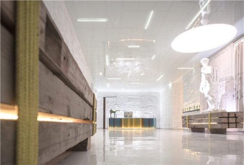 過(guò)道:黑色六角形地磚以白色線(xiàn)條勾勒,水波紋不銹鋼頂面如波光粼粼的水面,縱深悠長(zhǎng)。行走其中,有穿越時(shí)空之感。