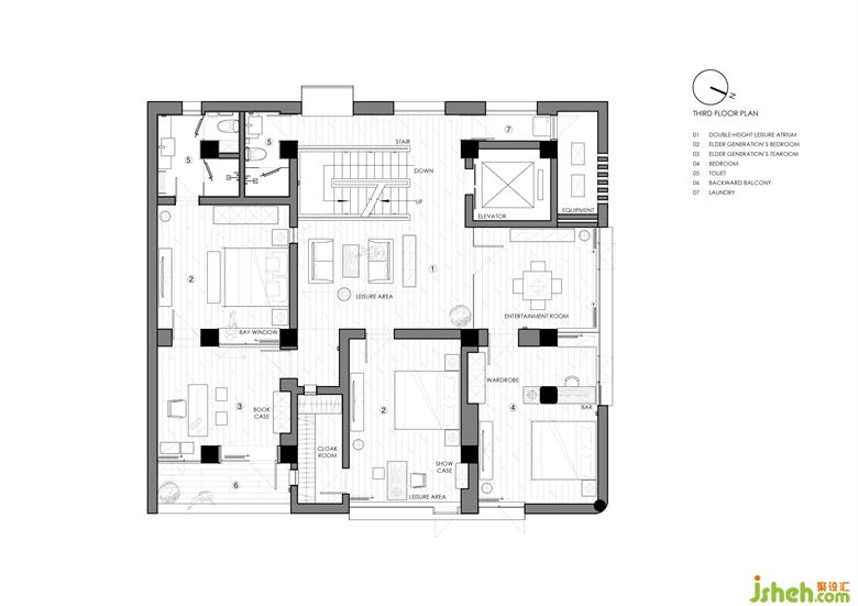 三層平面圖,F(xiàn)loor plan ofthird floor: ©本哲建筑