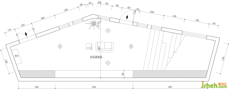 原建筑是一個(gè)位于員工食堂旁極其狹小且異形的空間。原本只是建筑修建中,遺留下來的一塊灰色地帶。整個(gè)建筑空間占地投影面積約30平方米,層高接近六米,立體空間也呈現(xiàn)出毫無邏輯的變異漏斗形狀。通風(fēng)采光也因?yàn)槠浣ㄖ旧淼脑?,受到了極大的影響。這無疑為設(shè)計(jì)的思考帶來了不小的阻力。