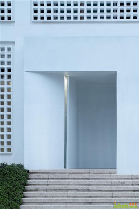 外觀上相對封閉的白色立方體是它的形式,墻面的孔洞幽微地向內(nèi)或向外滲透著,試探著。