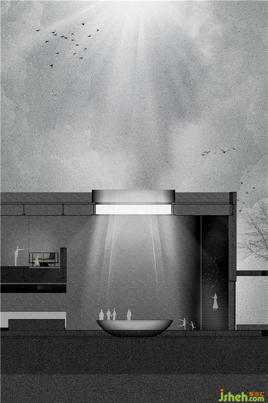 垂直的天光孔洞,那是夢(mèng)想的高光時(shí)刻,崇高作為一種結(jié)果在這里顯現(xiàn);挑空的大廳與二樓,形成高低錯(cuò)落的躍層,這是向更高處探索的渴望;而倚墻而坐的角落,光影細(xì)密,低偎與溫暖環(huán)繞,空間于千萬個(gè)小孔里保存著壓縮的時(shí)間,關(guān)照彼此。