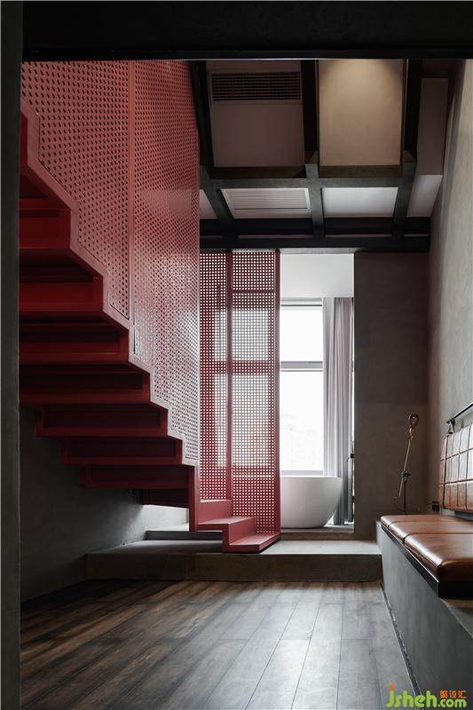 既然分為上下兩層,那么樓梯關(guān)系必然存在,再加之空間本身狹長的關(guān)系,在分為上下層之后,整個空間里并沒有過多的區(qū)域來設(shè)置較為核心的視覺中心,于是,我們在每一個房間里,都把樓梯作為了一個核心表達的載體。工廠里形形色色的樓梯形式,在經(jīng)過再次加工后,出現(xiàn)在每個房間之中,它不僅強化了視覺的中心,也通過材質(zhì)與形式的多重表達,傳遞出摩登工廠的信息。再加之飽滿的日照關(guān)系,為空間增添了不少的趣味體驗。