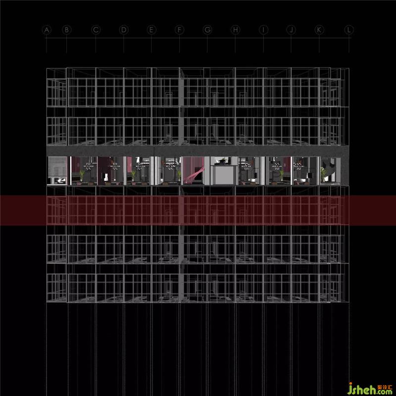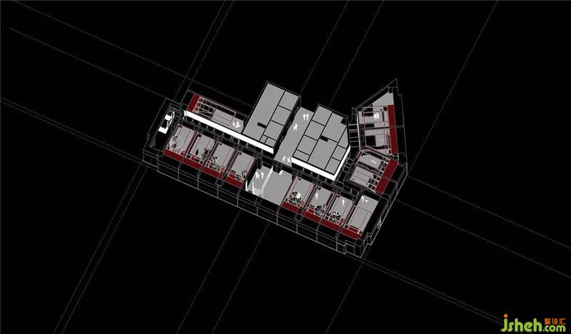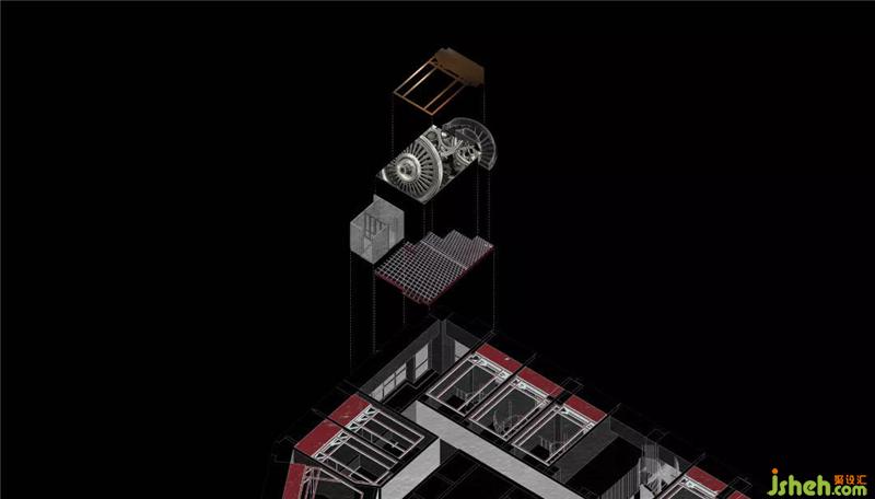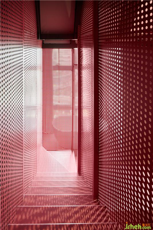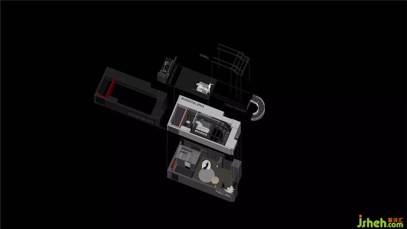 二層作為居住空間,更多的考慮來自于舒適性與便利性的思考。豐富的燈光形式與地毯的設(shè)置,都是在弱化鋼材所帶來的冰冷感,而暗紅色的藝術(shù)涂料,不僅能增添空間的層次感跟包裹感,亦能產(chǎn)生些許的溫暖感受。每一個房間我們都在睡眠空間相關(guān)的區(qū)域設(shè)置了便于掛取的衣帽設(shè)備,而在空間較為充足的房間里,我們均設(shè)置了上下兩處清潔衛(wèi)生空間,以此來滿足更為便利的生活功能使用,帶來更為舒適的居住體驗。