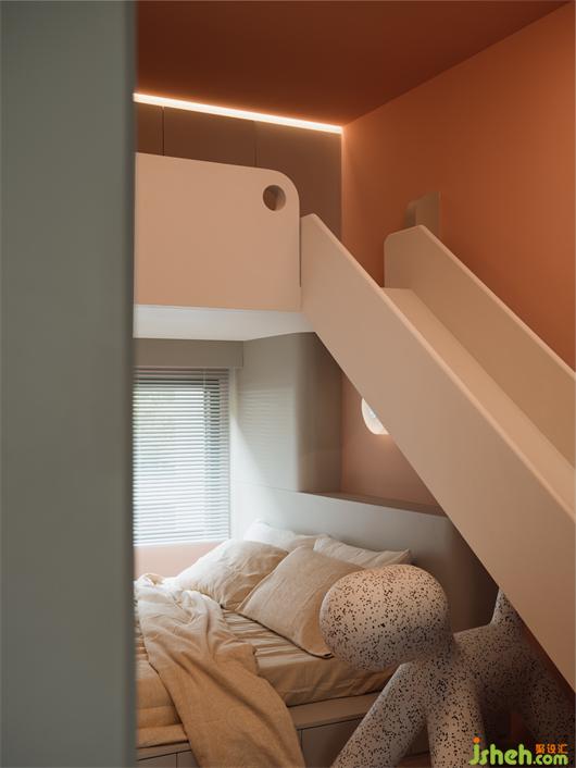 The master bedroom, as my main living space, I hope to get the greatest relaxation and freedom here. Therefore, the wall of the main bathroom is opened, so that the wash area and the closet are meshed together, and at the same time, it is also integrated with the entire bedroom. The location of the original bay window was also removed and incorporated into the bedroom. A long bedside table was extended to further enlarge the spatial scale through aggressive expressions.