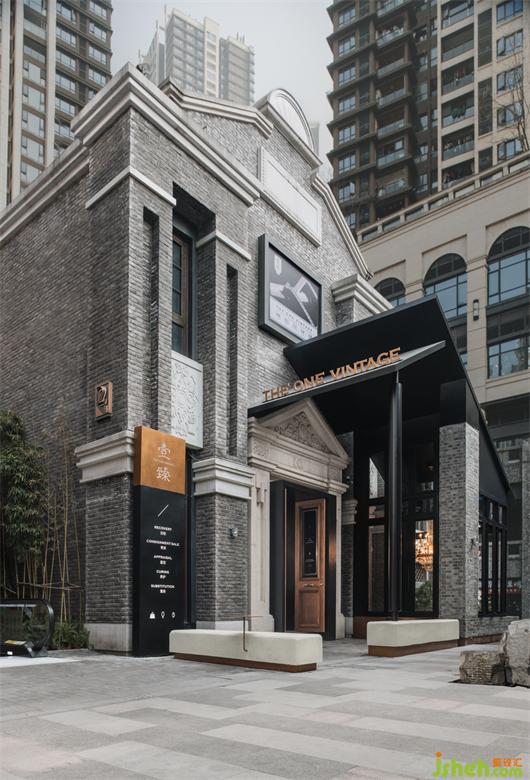 作為初創(chuàng)品牌的「壹臻」,其首家門(mén)店位于重慶市南岸區(qū)彈子石老街,是一棟仿民國(guó)式的獨(dú)立建筑。其物業(yè)本身,具有較強(qiáng)的年代感,這無(wú)疑是為該中古門(mén)店的視覺(jué)呈現(xiàn),奢侈品商店設(shè)計(jì)創(chuàng)造了一定的基礎(chǔ)條件。但也正是因?yàn)槠渫怀龅拿駠?guó)建筑形象,又為我們力求創(chuàng)新的空間設(shè)計(jì),造成了不小的物理環(huán)境障礙。再加上山城特有的地理因素,該物業(yè)背靠山體,面朝高墻,且商業(yè)環(huán)境的主交通流線并未與該物業(yè)產(chǎn)生直接的關(guān)聯(lián),甚至在主通道上,我們只能側(cè)視其建筑的一角……這都成為了在設(shè)計(jì)之初我們所面臨的挑戰(zhàn)。于是,如何讓過(guò)往的游客能關(guān)注到「壹臻」,并吸引他們進(jìn)入商店,將是我們首先要解決的問(wèn)題。