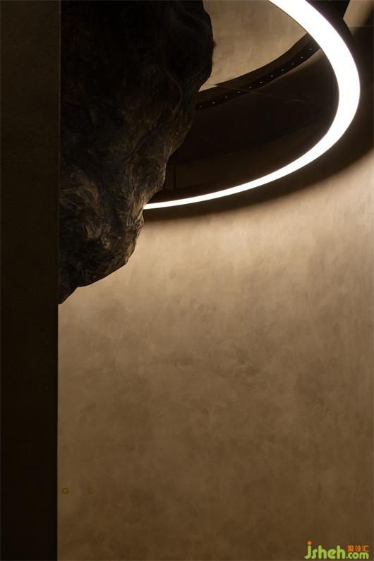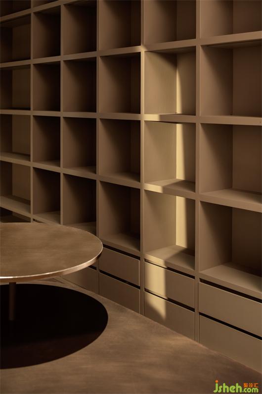 奢侈品商店設(shè)計環(huán)形的通道,讓“逛”的購物體驗在本不算大的室內(nèi)空間里得以保證。同時,當你跟著我們預(yù)設(shè)好的路線,進入到商店最里面時,你會發(fā)現(xiàn),圓柱體被打開了一道口子,在這圓柱體的“身體”里,有一顆可以“呼吸”的“心臟”。這是我們的一處小心思,也是給予消費者的一個驚喜,更是我們對于「壹臻」生命力的期望。一顆閃爍的山城之心。