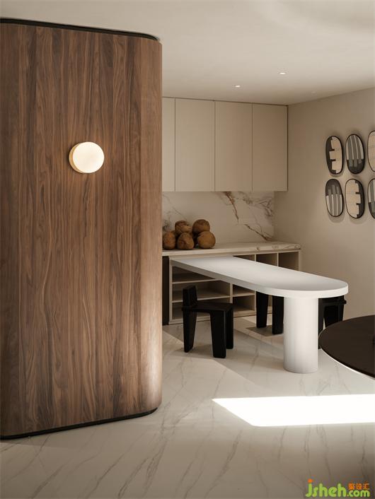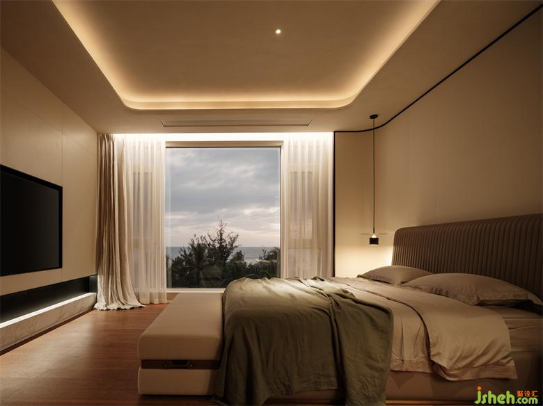 三亞度假別墅設(shè)計(jì)以一層空間為基準(zhǔn)。我們將樓上的空間界定為更加安靜與私密的靜態(tài)空間。二樓作為兒女及晚輩的主要生活空間,被劃分為了三間臥房。因?yàn)闆]有了大量且長期的儲藏需求,所以我們給予了每個(gè)空間更大的尺度關(guān)系,讓其體驗(yàn)感受得以更加舒展與放松。當(dāng)然,這才符合度假的意義。