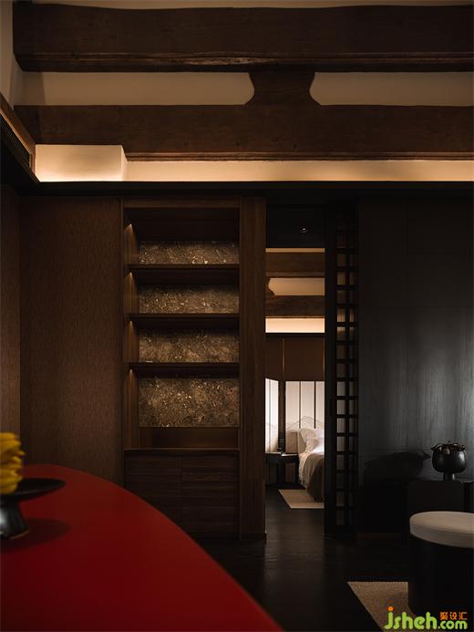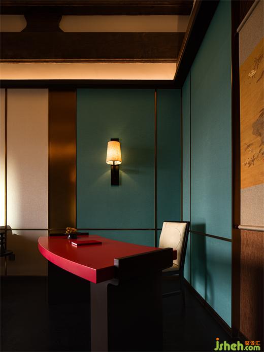 因其釀造作坊的特殊性(國(guó)家級(jí)非物質(zhì)文化遺產(chǎn)& 國(guó)家級(jí)文物保護(hù)單位)原因。所以內(nèi)部接待的核心人員均與技藝、歷史、政要相關(guān)。所以傳統(tǒng)的裝飾材質(zhì)、質(zhì)地、以及色彩關(guān)系被大量運(yùn)用。比如鋪地使用的黑色金磚、大面積使用的刺繡墻布、以及隨處可見(jiàn)的原木質(zhì)地。紅、綠色的撞色搭配,也通過(guò)新的方式,非遺會(huì)館設(shè)計(jì)在空間里呈現(xiàn)。