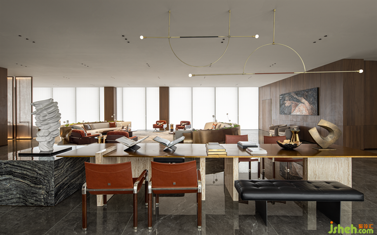 沙發(fā)來自Jorge Zalszupin經(jīng)典設(shè)計,西安會所設(shè)計以幾何線條和有機形狀為特征,結(jié)合明確的比例,優(yōu)美的線條和經(jīng)典的細(xì)節(jié),超越時間,已然成為永恒。