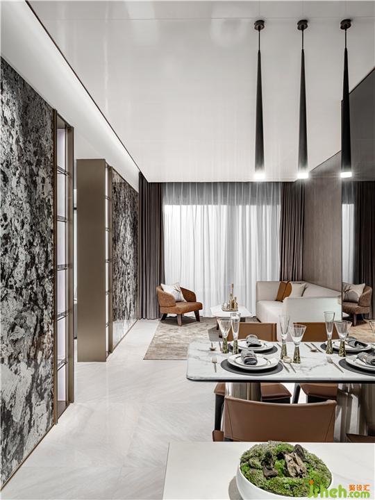 空間如畫,設(shè)計(jì)師認(rèn)為在節(jié)奏飛快,鋼鐵水泥建造的大都會(huì)城市,樣板間設(shè)計(jì)師有必要讓生活變得更加詩(shī)意從容,讓更多的人放慢腳步,去感受、去體會(huì)詩(shī)和遠(yuǎn)方,在空間設(shè)計(jì)中,植入天然大理石畫面,連同客餐廳,氣勢(shì)如虹,猶如一幅東方意境的山水文人畫,仿佛穿越回那個(gè)每個(gè)人心中都有一片山水的時(shí)代