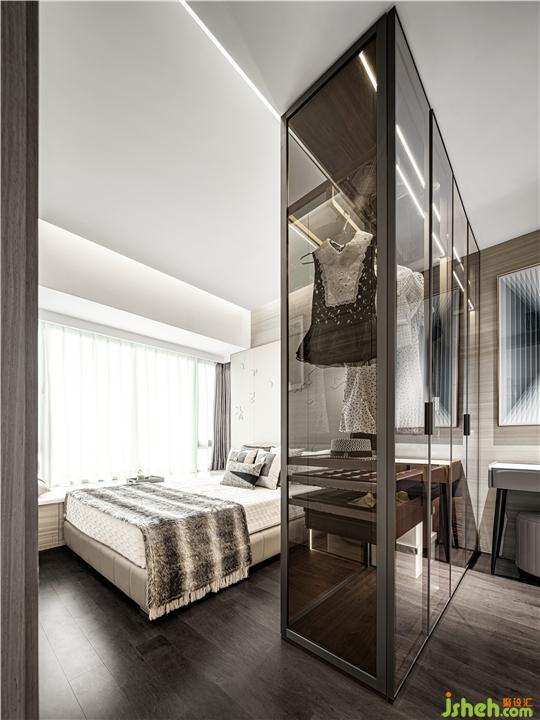 主臥空間以玻璃定制高柜劃分空間,隔而不擋,通透空靈,在材料溫度上很好的平衡的臥室空間松弛狀態(tài),而加入了理性、紳士的生活態(tài)度