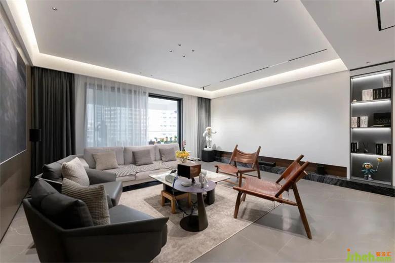 7、打通環(huán)動線后的客廳,方正大氣、四方通透, 在視覺上擴大了空間感與延伸感,