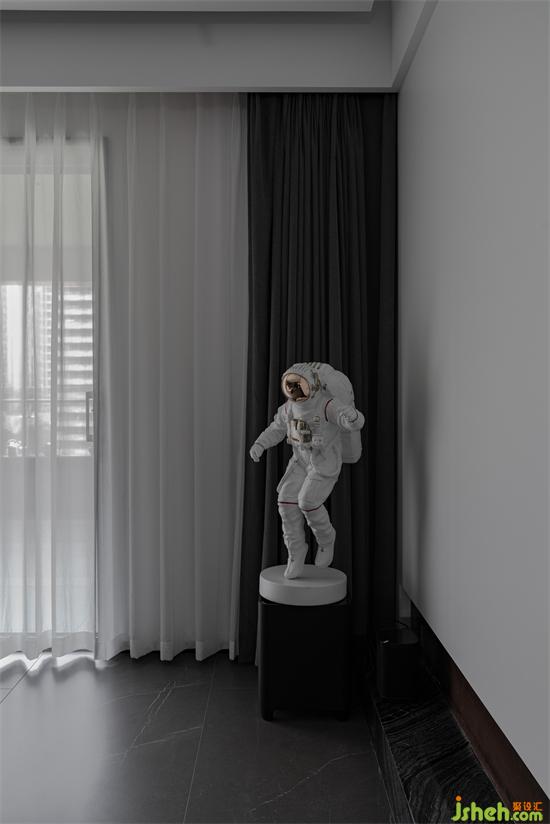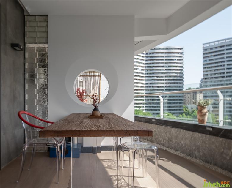 客廳外的陽臺打造成休閑茶室,原本空曠的區(qū)域瞬間轉(zhuǎn)換為一處避世遠方,空間也因此變的多元生動起來。