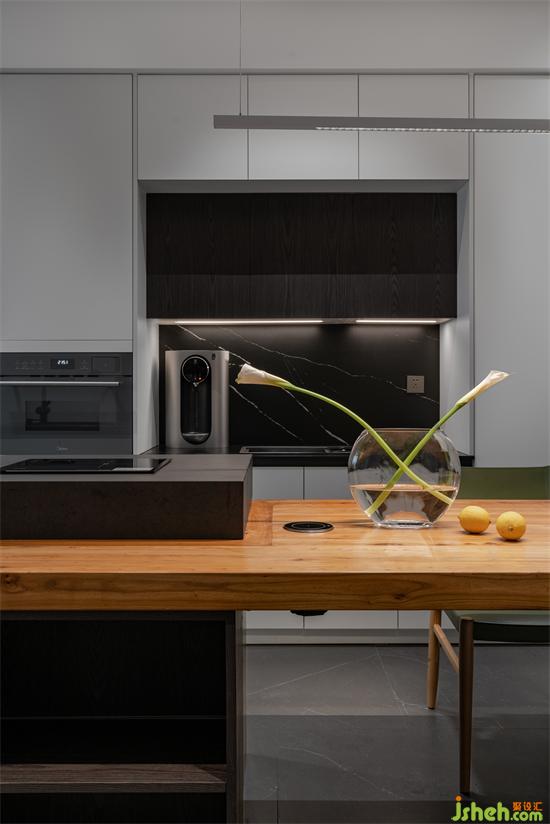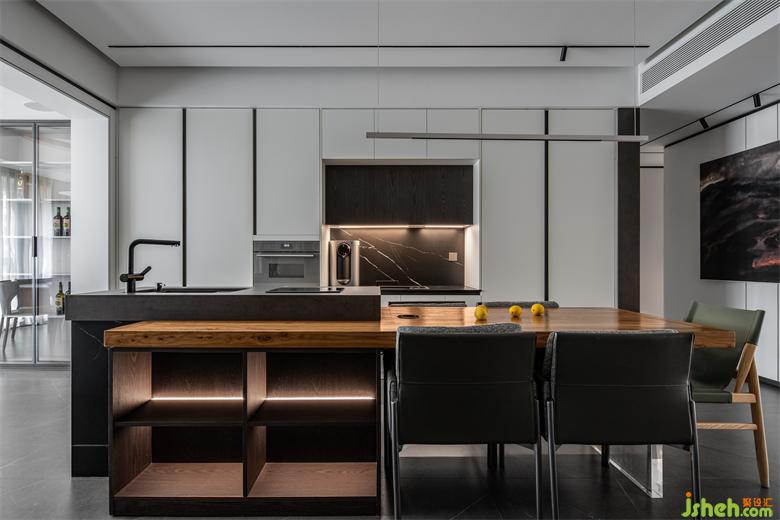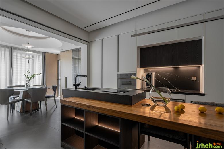 經(jīng)過改造的空間,布局更為清晰,空間關(guān)系層層遞進,更有章法。業(yè)主熱愛生活,喜愛美食,結(jié)合生活習(xí)慣和使用需求,我們?yōu)闃I(yè)主打造了中、西餐廳兩塊區(qū)域,麗雅龍城住宅設(shè)計用圓與線詮釋傳統(tǒng)與現(xiàn)代的平衡。