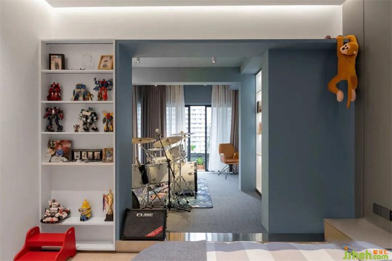 周全的設(shè)計建立在對業(yè)主生活的體察上,占據(jù)陽臺的一部分融入臥室,麗雅龍城住宅設(shè)計用藍色盒子點亮少年的夢想,與休息區(qū)域動靜結(jié)合,色彩的搭配碰撞出蓬勃的活力。