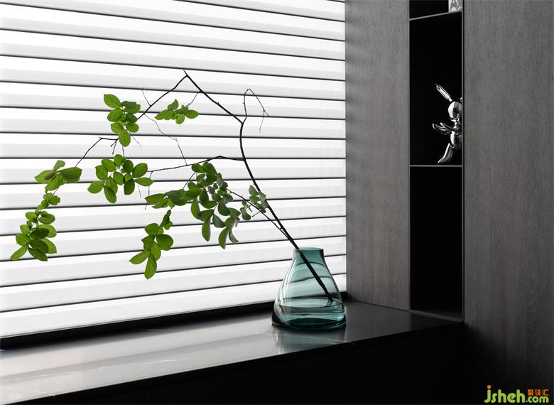 色彩提取江南山水間煙雨朦朧的大面積黑白灰+墨綠色點綴,產(chǎn)生一種與簡單、純粹、舒適共鳴的對話形式,呈現(xiàn)自然生機與現(xiàn)代審美。