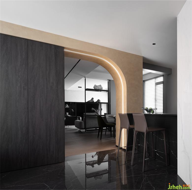 獨特的異形結(jié)構(gòu)總是能帶給空間創(chuàng)造無數(shù)的驚喜,推開門的那一刻,映入眼簾的就是一幅與眾不同的畫面。寬敞的入戶,鑫嘉園家居設(shè)計一面是造型獨特具有隔斷功能的玄關(guān)墻,一面是簡單干凈的矮柜收納,不同材質(zhì)的對比與功能搭配,營造出空間的高級感。