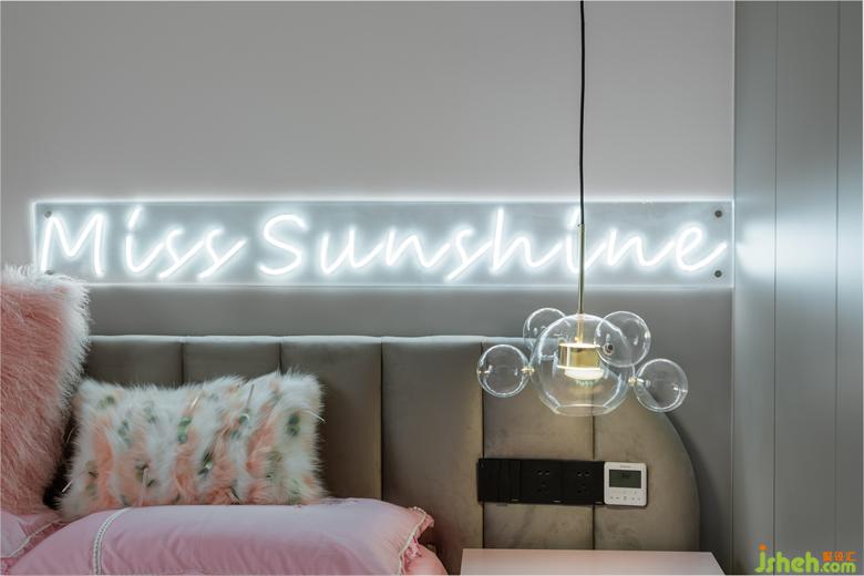 淡淡的灰粉色與閃亮的英文氛圍燈,組成了一間夢(mèng)幻般的房間。相比男孩房,一間是沉穩(wěn)向上的青年,一間是活潑無憂的少女。鑫嘉園家居設(shè)計(jì)明朗色彩與幾何造型交織出立體的畫像,明晰的性格,透過設(shè)計(jì)的筆法彌漫空間,在去符號(hào)化的場(chǎng)景中熏陶心靈。