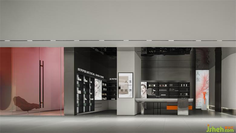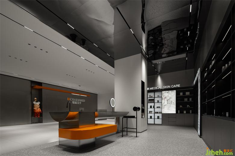 亮眼的橙在暗色背景下突出品牌logo,醫(yī)美旗艦店裝修設(shè)計(jì)以干練、簡(jiǎn)潔、直達(dá)人心的表達(dá)方式展現(xiàn)出純粹的美學(xué),與醫(yī)學(xué)館“以誠(chéng)造美,本質(zhì)美學(xué)”的核心價(jià)值相契合。