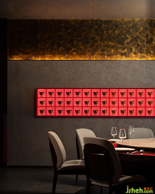 “座上客常滿,樽中酒不空”。 金樽本是慶典宴飲的禮制酒器,包間以“金樽醉”命名,潮菜餐廳設(shè)計(jì)用場(chǎng)景具現(xiàn)意象,凸顯了宴飲賓客尊貴的身份、地位。