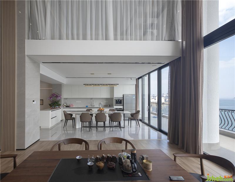 隨之步入會客廳以室內(nèi)序幕全開放式會客廳-茶藝廳-開放式中廚-中餐廳-西廚-西餐廳串聯(lián)橋接、它是一種包容、它是一種開放、它安靜的接納、利用大面積通透玻璃將海景由外引里。簡單質(zhì)樸而源遠流長。