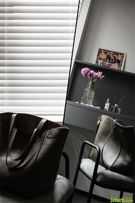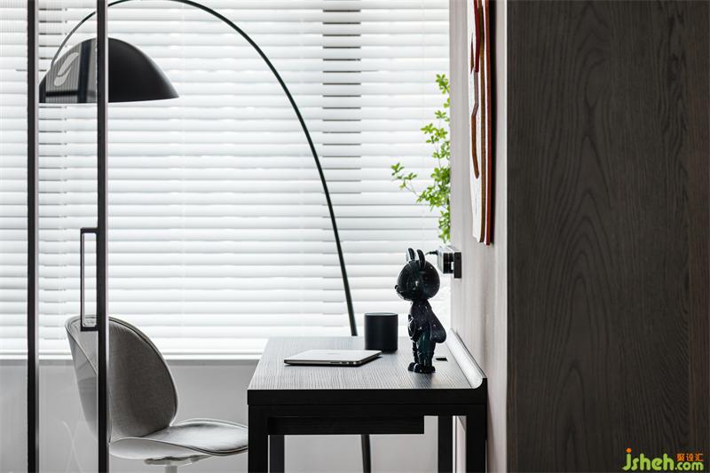 屋主對(duì)書柜要求要儲(chǔ)物性強(qiáng),家居設(shè)計(jì)以封閉柜門為主,小部分開放式柜體,放置個(gè)性化物件增加了空間情緒。