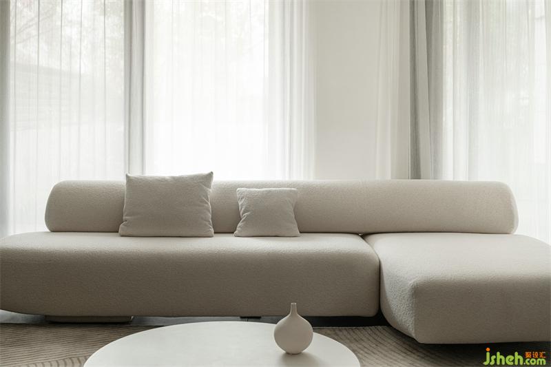 光線通過整面窗紗灑進(jìn)室內(nèi)讓本來具有柔美曲線的沙發(fā)讓人感覺更加想親近。推開門花園景色映入眼簾,在家也能與自然更親近。飲一壺茶、聽一首音樂讓時光慢下來,風(fēng)是常來串門的鄰居......