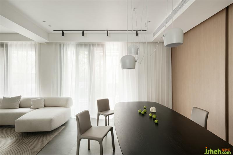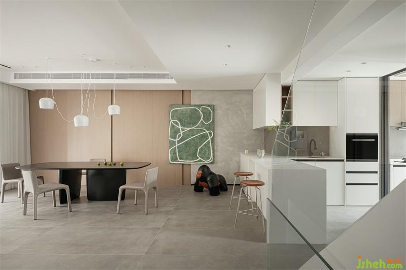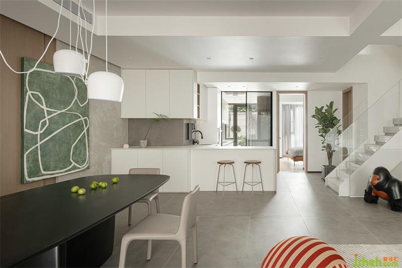 The integrated design of the island table and dining table in the kitchen creates a fusion dining and kitchen space. LDK's integrated life situation makes the home atmosphere more intense and warm.