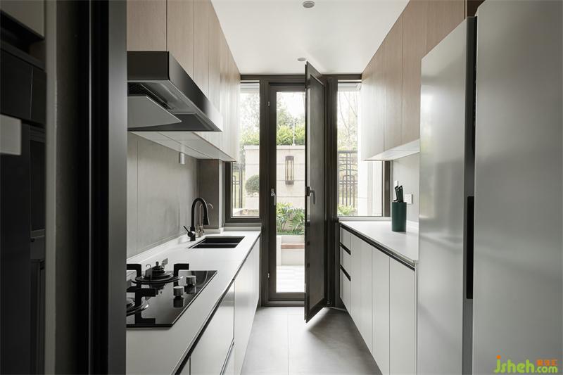 擴(kuò)展后的廚房干濕分離更明確,讓做飯不再是一件枯燥的事。復(fù)式設(shè)計(jì)廚房延用客餐廳色調(diào),改變動(dòng)向后的廚房通透實(shí)用。