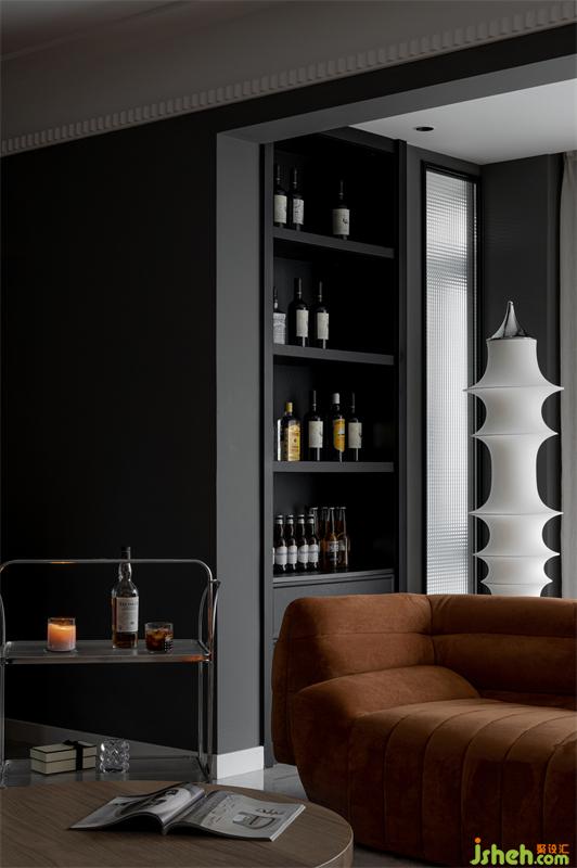 屋主在閑暇時(shí)間喜歡喝酒,我們?cè)陉?yáng)臺(tái)搭建后增加了酒柜,推車替代傳統(tǒng)邊幾,方便移動(dòng)。