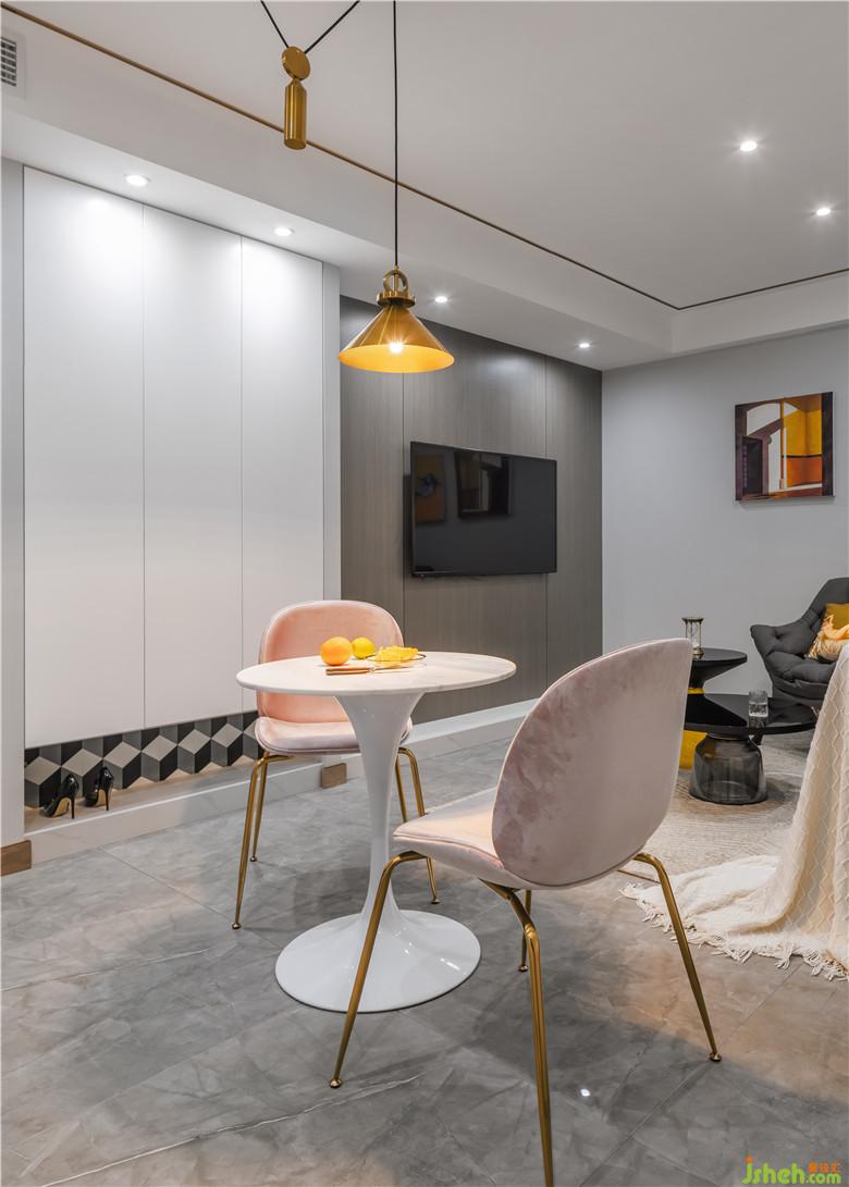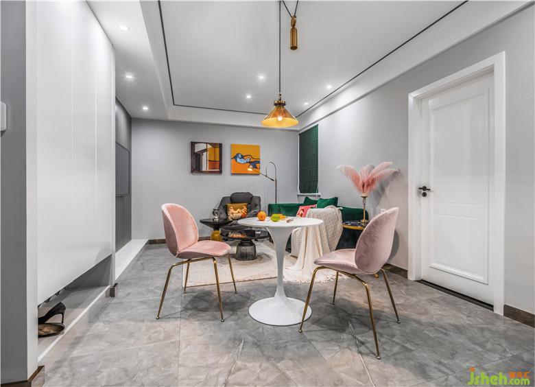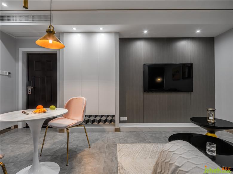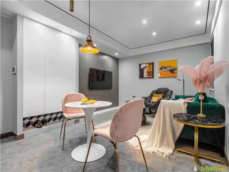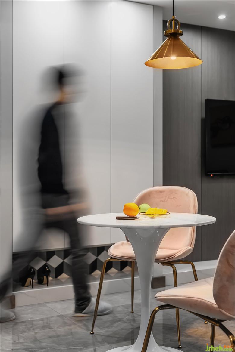 項(xiàng)目位于蕪湖城東市政府旁的小兩居,業(yè)主偶爾去住,所以對(duì)廚房、餐廳以及陽臺(tái)的功能性不做要求,裝修公司放棄了次臥改為客廳、增大餐廳面積并且把冰箱從廚房移出來的設(shè)計(jì)方案。本案摒棄小空間常用的北歐風(fēng)格,以墨綠色與灰色構(gòu)成強(qiáng)烈對(duì)比,通過香檳金的搭配,渲染上一層精致格調(diào)。全屋采用無主燈設(shè)計(jì),以點(diǎn)光源、線光源烘托居室氛圍。