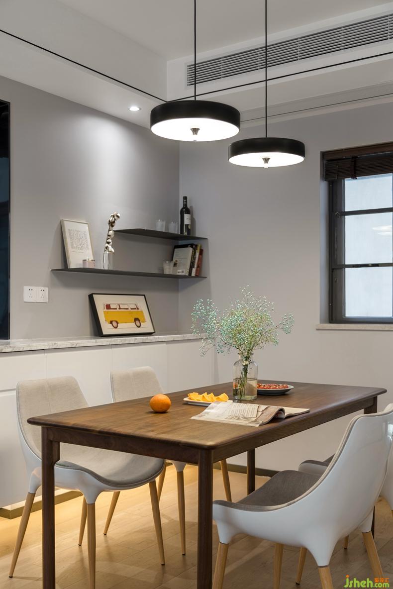 2.敲掉廚房部分墻體,讓餐廚空間更好的互動(dòng)。餐廳打造柜子,與廚房相連部分可充當(dāng)吧臺(tái)功能。