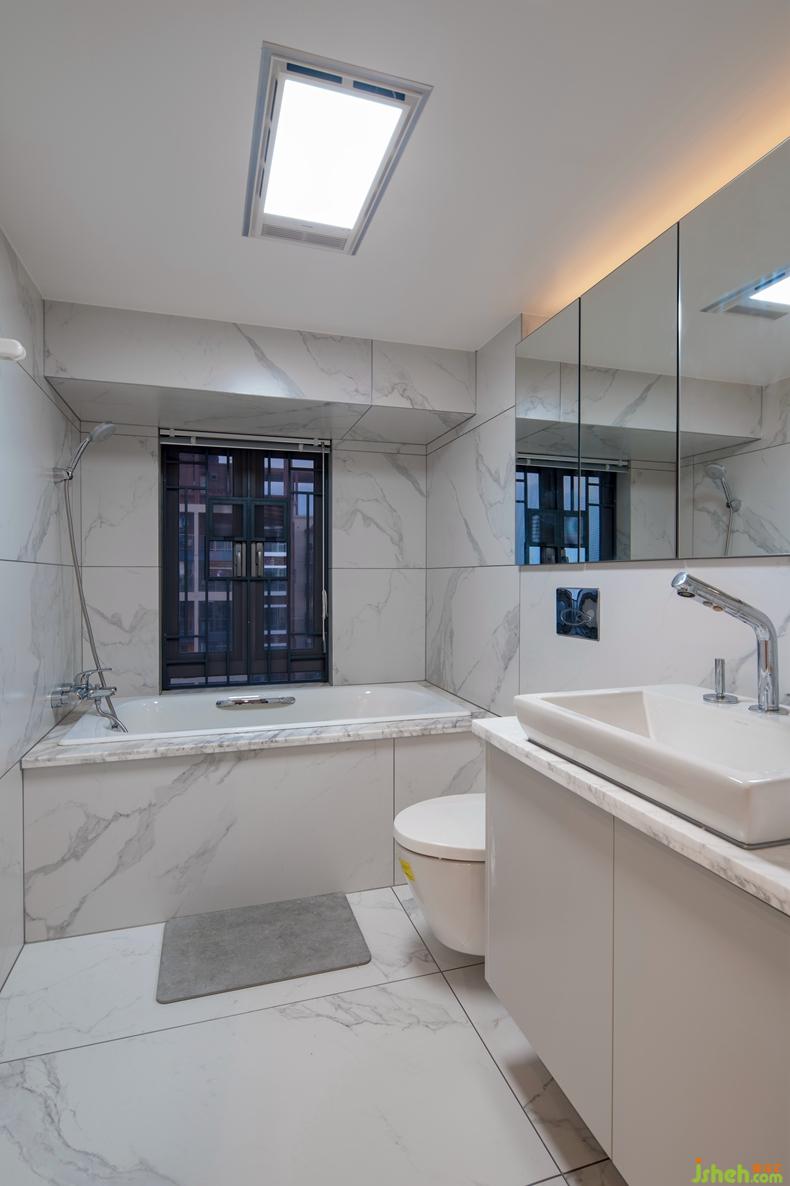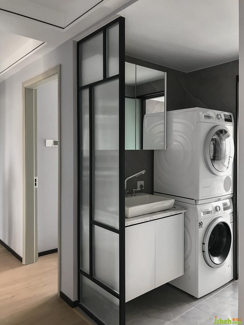 5.公共衛(wèi)生間打造成干濕分區(qū),并將洗衣機(jī)干衣機(jī)放在干區(qū),為陽臺(tái)騰出更多空間休閑。