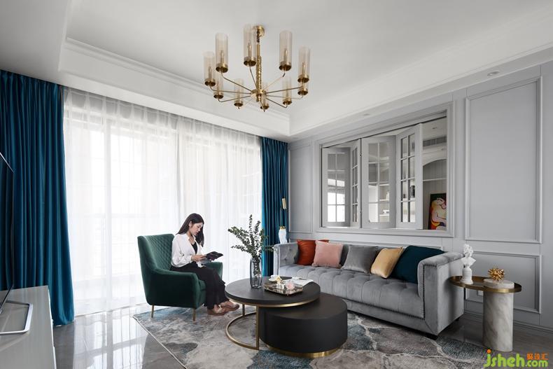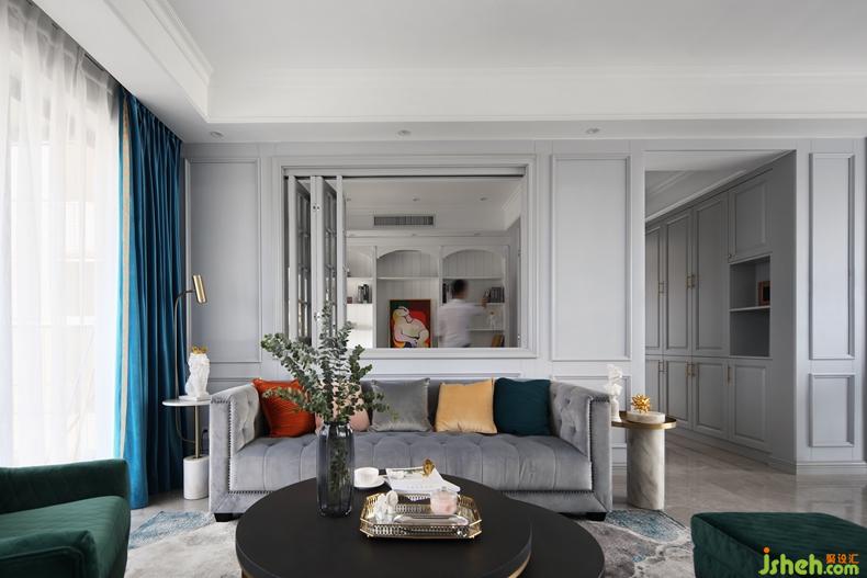 △沙發(fā)背景墻摒棄傳統(tǒng)墻面,開了個折疊窗,讓客廳與書房二者相通,增加兩個空間的流動性和互動性。男屋主在書房工作,女屋主在客廳娛樂,安全感就是,一抬頭,你就在眼前。