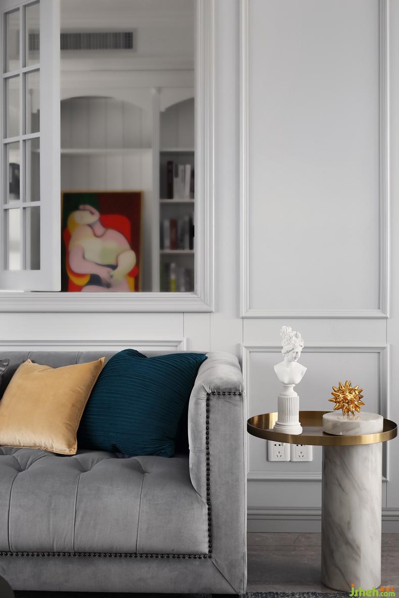 △因為空間有限,只能在一邊放置床頭柜。特意選擇造型感比較強的柜子用來點綴床頭,同時還能達到儲物效果。深圳裝修公司