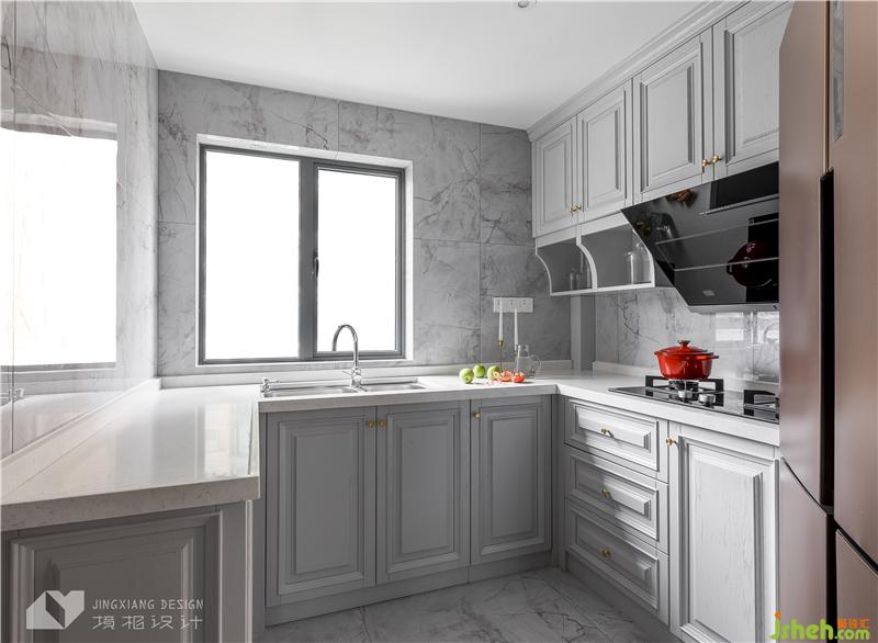 調(diào)整后的廚房面積比較開闊,U型操作臺(tái)滿足烹飪需求。超多儲(chǔ)物可以用來(lái)儲(chǔ)物,靠近灶臺(tái)的地方設(shè)計(jì)了開放式儲(chǔ)物格,方便瓶瓶罐罐的存放。室內(nèi)設(shè)計(jì)師