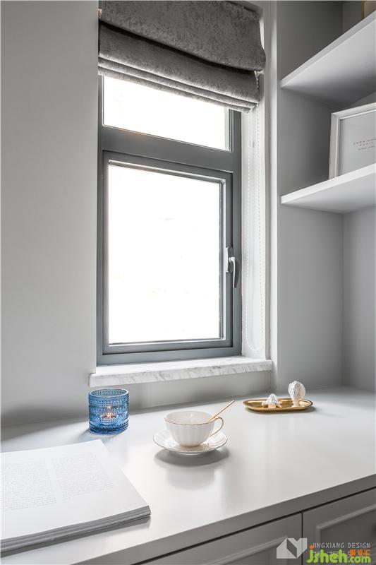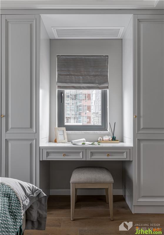 床尾的儲(chǔ)物量十分強(qiáng)大,并且根據(jù)窗子設(shè)置了梳妝臺(tái),女屋主可以在這里梳妝打扮或者學(xué)習(xí)工作,同時(shí)也豐富了柜體結(jié)構(gòu)。