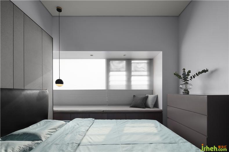 考慮到有衣帽間的存在,并且本身面積也不是特別寬敞,室內(nèi)設(shè)計(jì)師所以主臥沒有做太多柜子,僅在床尾用斗柜來做日常用品的收納。