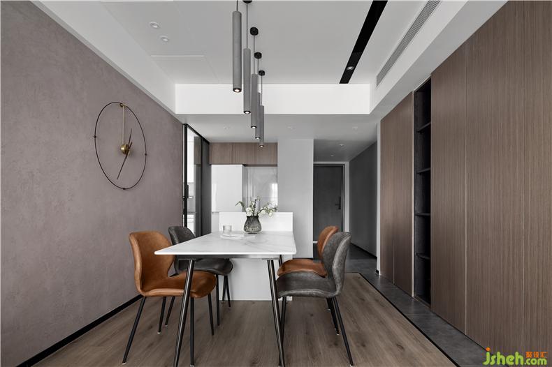 設(shè)計吧臺與餐桌相連,豐富餐廳功能,這里不僅是用餐空間,室內(nèi)設(shè)計師還可以泡泡茶、沖沖咖啡,有朋友來了這里還可以變身成愜意的小酌之所,家中最時髦的角落非它莫屬~