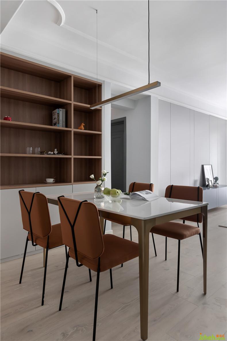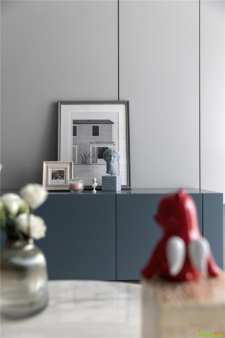 屋主在家做飯的次數(shù)屈指可數(shù),室內(nèi)設(shè)計(jì)師所以餐邊柜一部分用于儲備餐廳區(qū)域的雜物,另一部分則用于存放書籍,將實(shí)用性提升到最大。