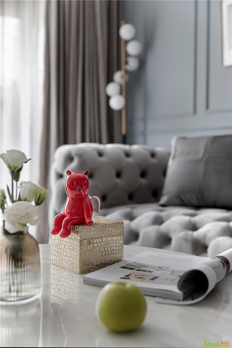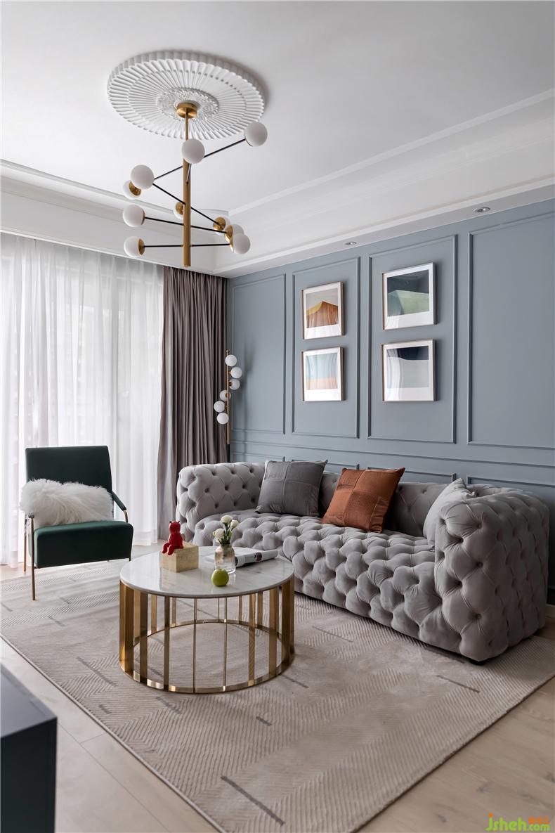 客廳空間簡約大方,灰白與灰藍(lán)的純色背景墻遙相呼應(yīng),室內(nèi)設(shè)計(jì)師既不失家的溫暖,又保證足夠耐看,色調(diào)上也多了幾分層次。