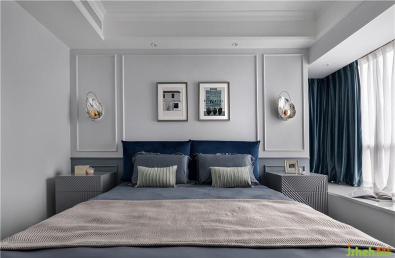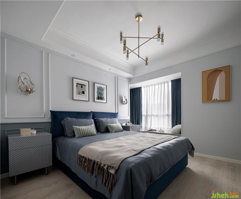 主臥運(yùn)用了多種深淺不同的藍(lán)色系,將靜謐舒適的尺度拿捏的剛好,不會過于單調(diào),也不會過于繁瑣