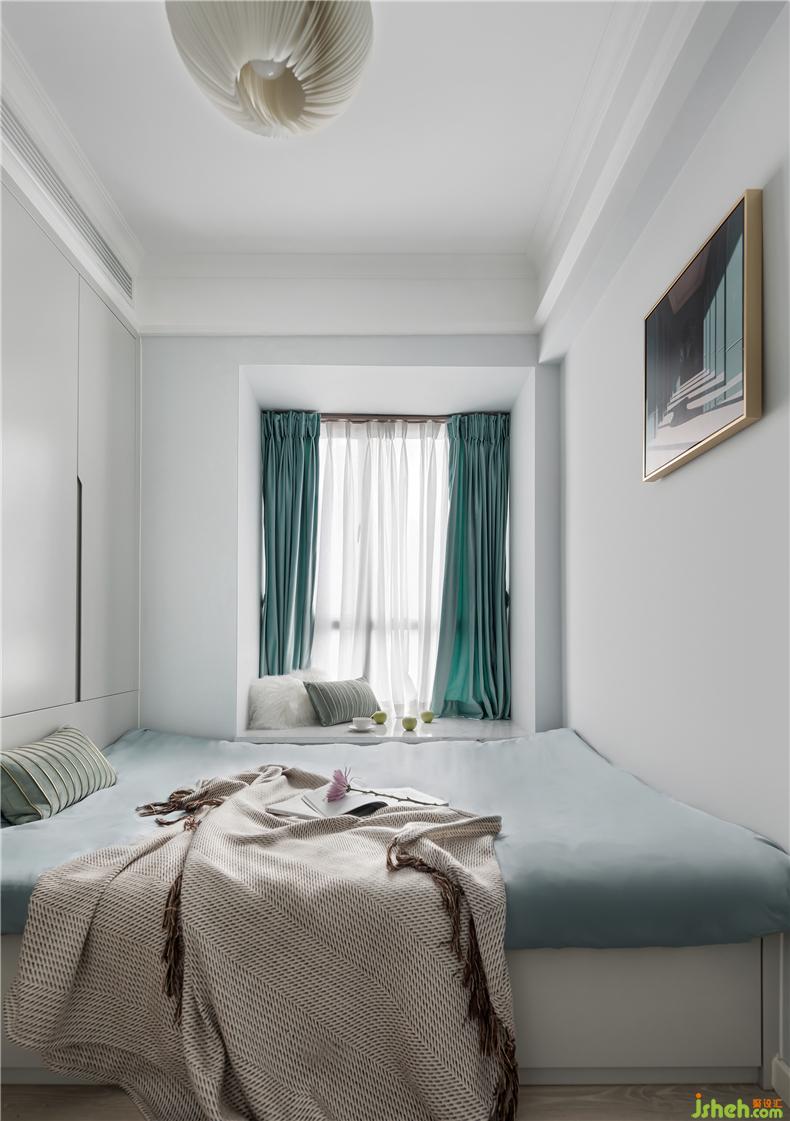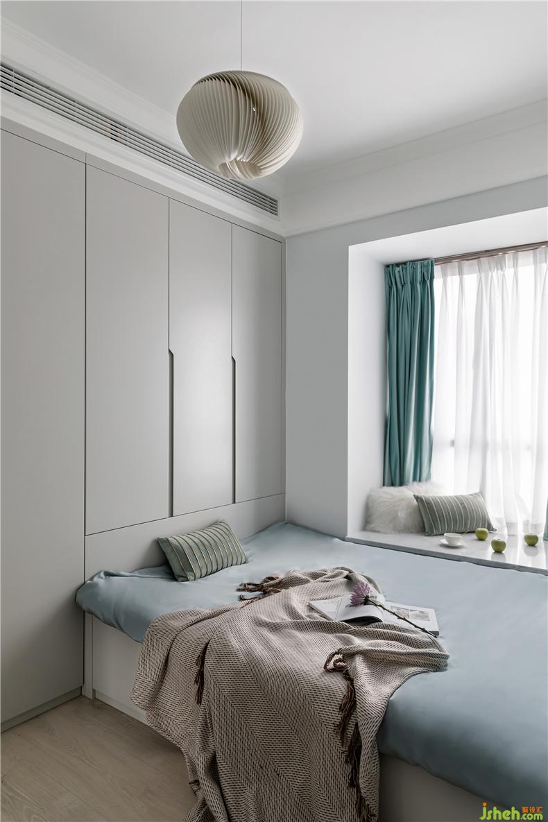 次臥面積不大,也暫時(shí)無(wú)人居住。結(jié)合屋主的儲(chǔ)物需求,室內(nèi)設(shè)計(jì)師我們打造了一整面的衣柜,幫助分擔(dān)主臥的收納壓力,設(shè)計(jì)與飄窗相連的榻榻米,將空間物盡其用